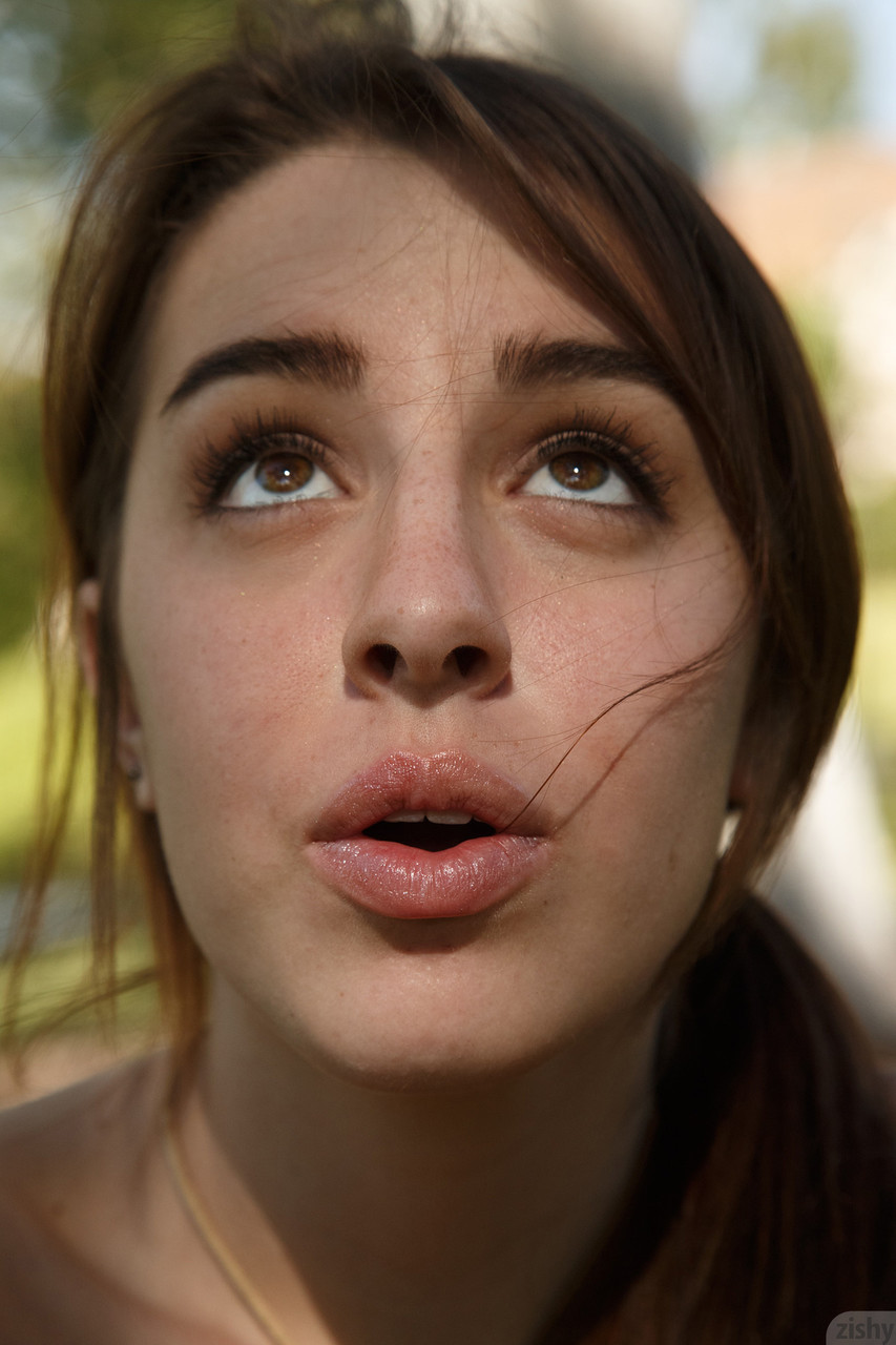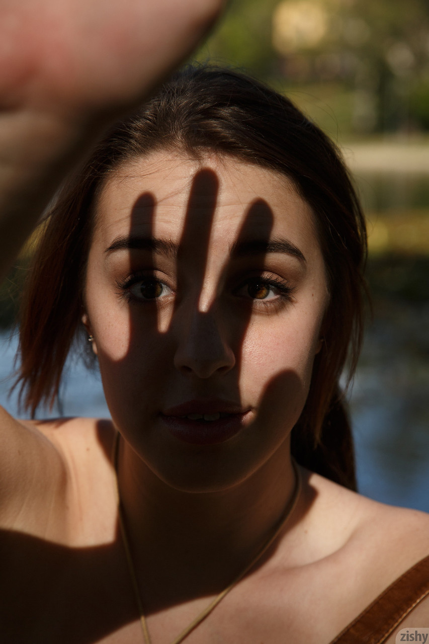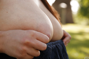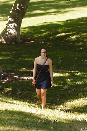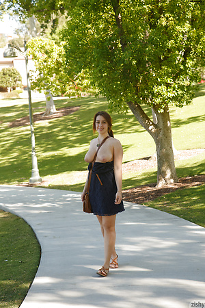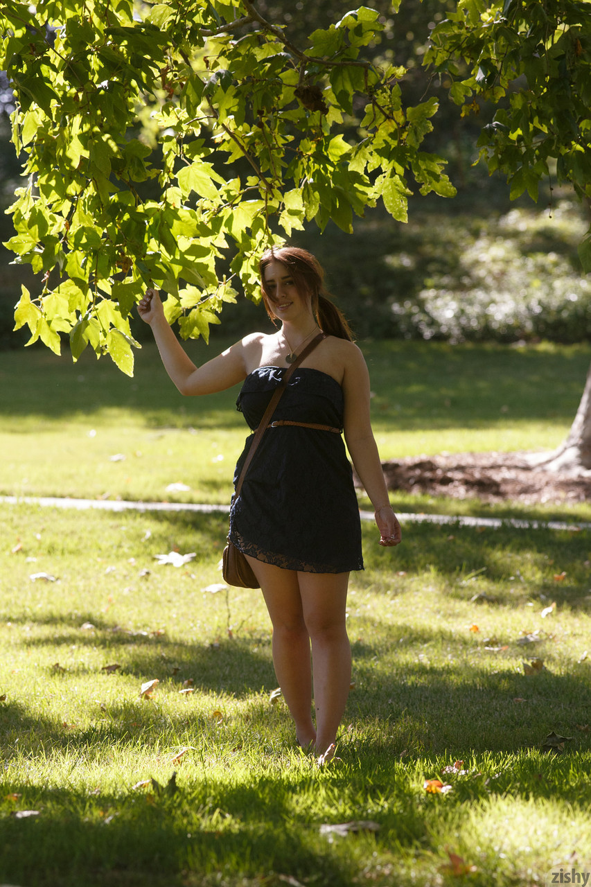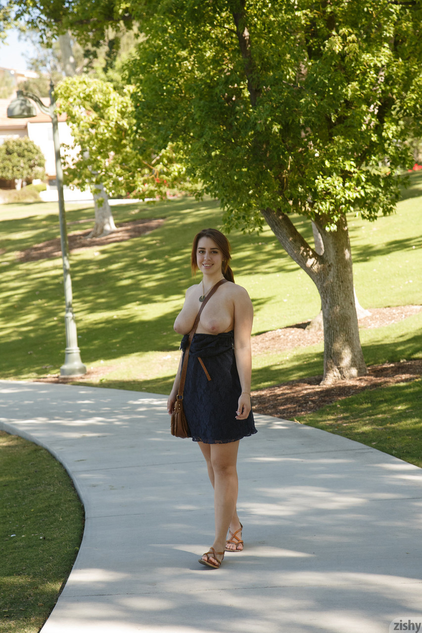 Teen girlfriend Lanie Morgan reveals big natural tits & ass in the park