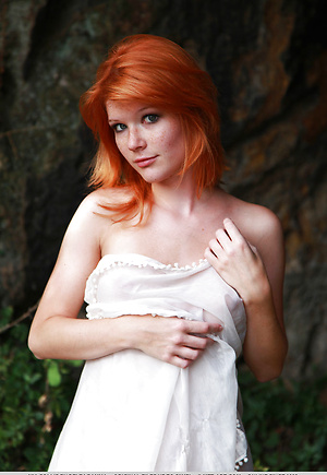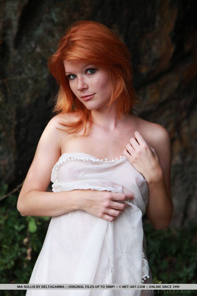 Artistic nudes with perfect redheaded subject Mia Sollis posting nude outdoors