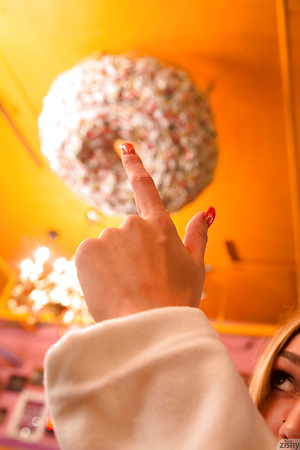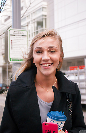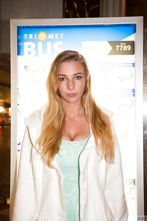 Sexy blonde babe Kendra Sunderland flashing juicy big tits in public
