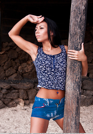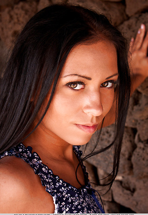 Naughty brunette Bailey A has a great come fuck me look, showing her great nude body outdoors