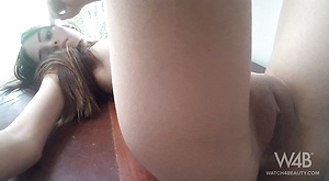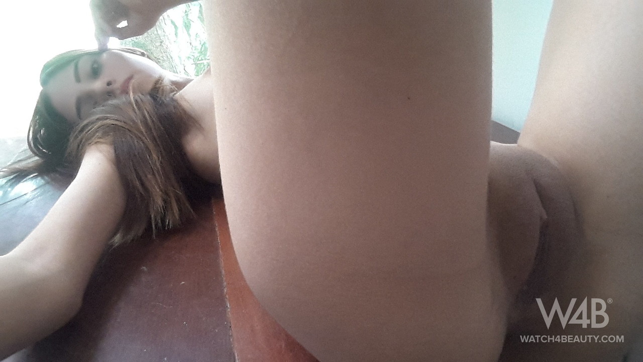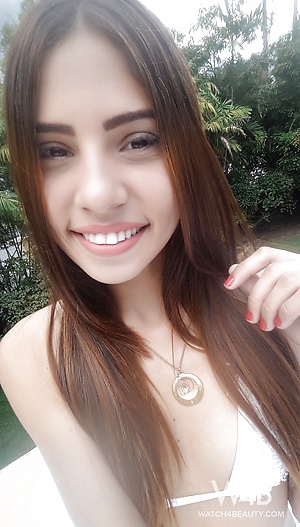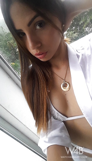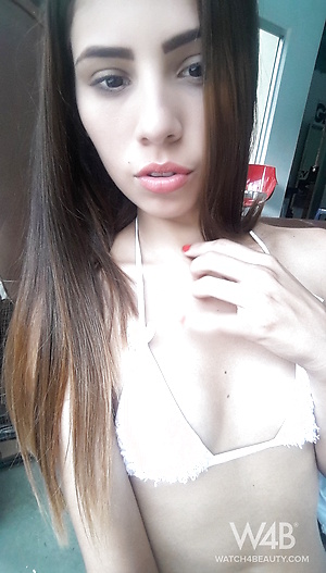 Sweet Latina Mily Mendoza exposes her adorable round ass and masturbates