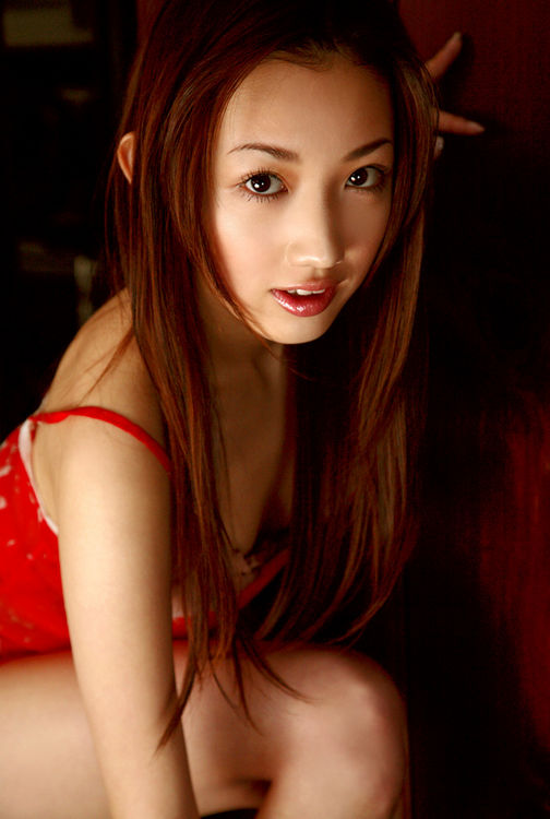 Seductive asian temptress in a short red dress hiding lingerie