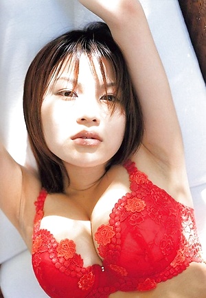 Cute short haired asian chick modeling in her bikini at the beach