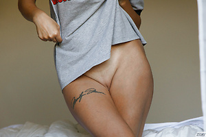 Sexy brunette Nalani Dacus shows off her juicy tits and her big booty