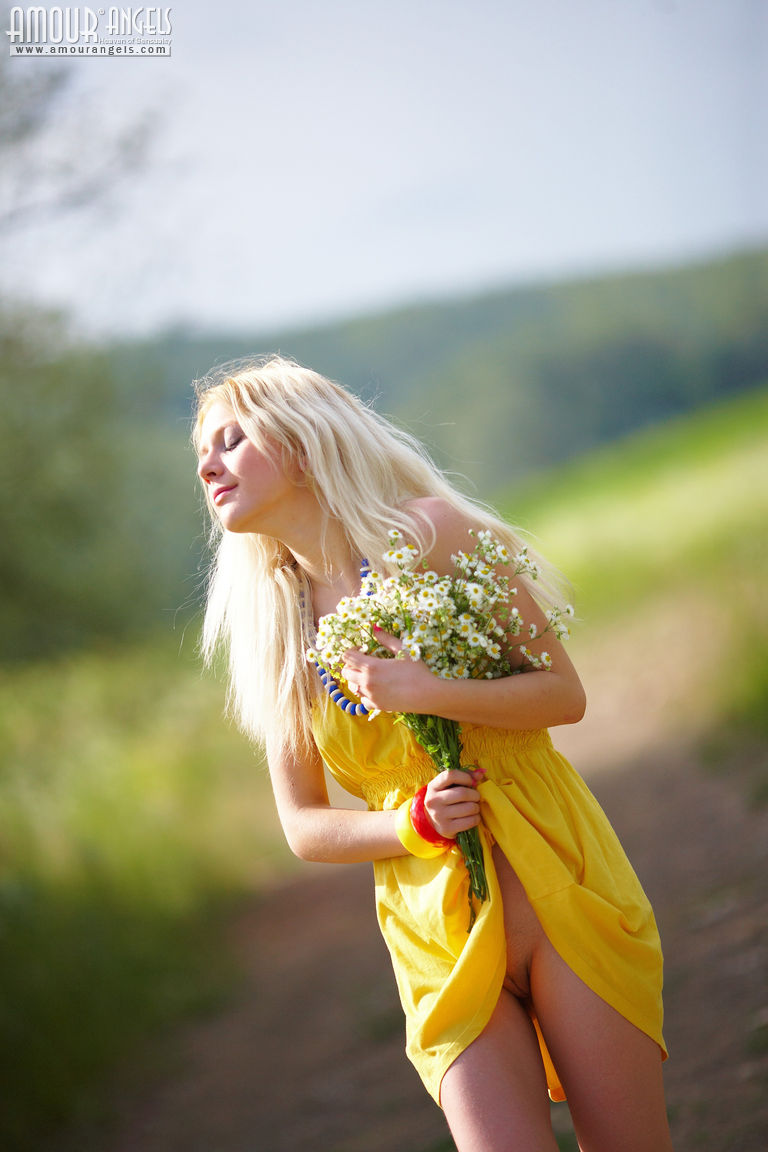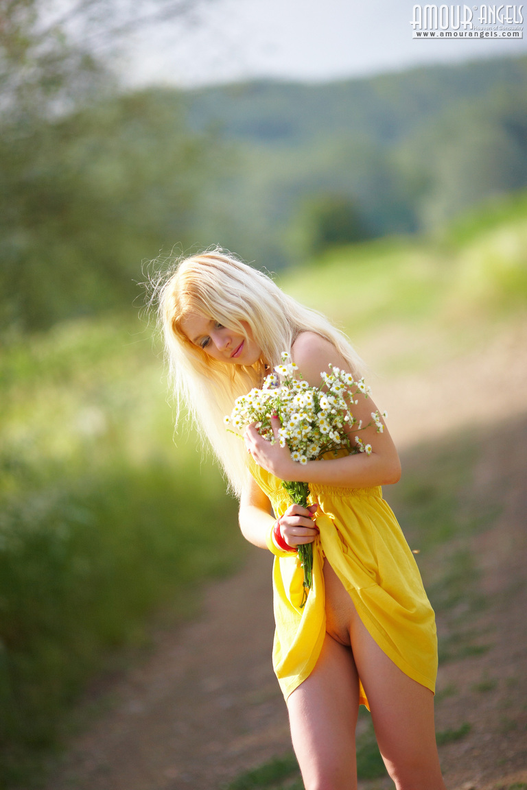 Teen strips outdoors